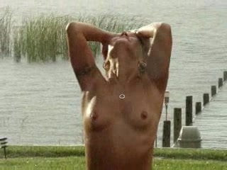 Busty ngăm đen lượt với đôi kết thúc dildo